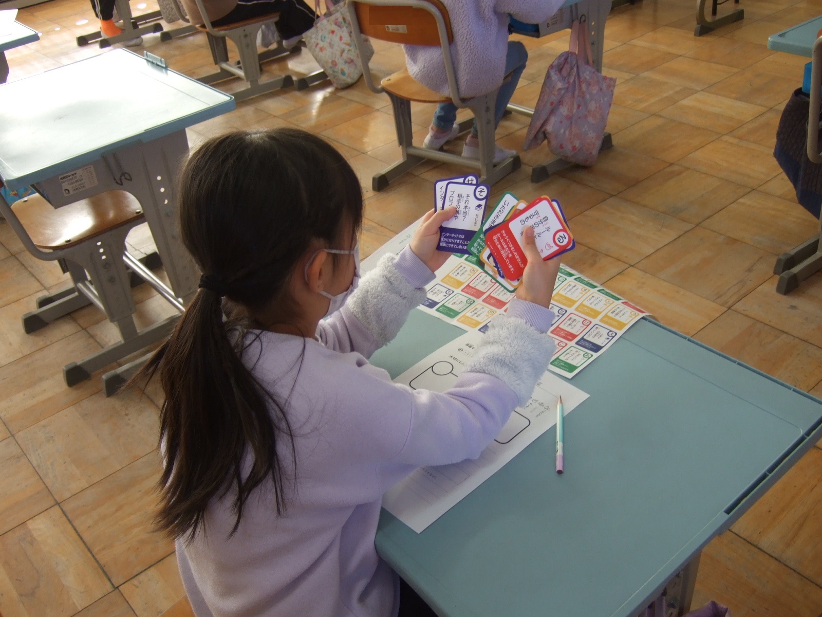 1月28日情報モラルをカルタで勉強(3年学活)