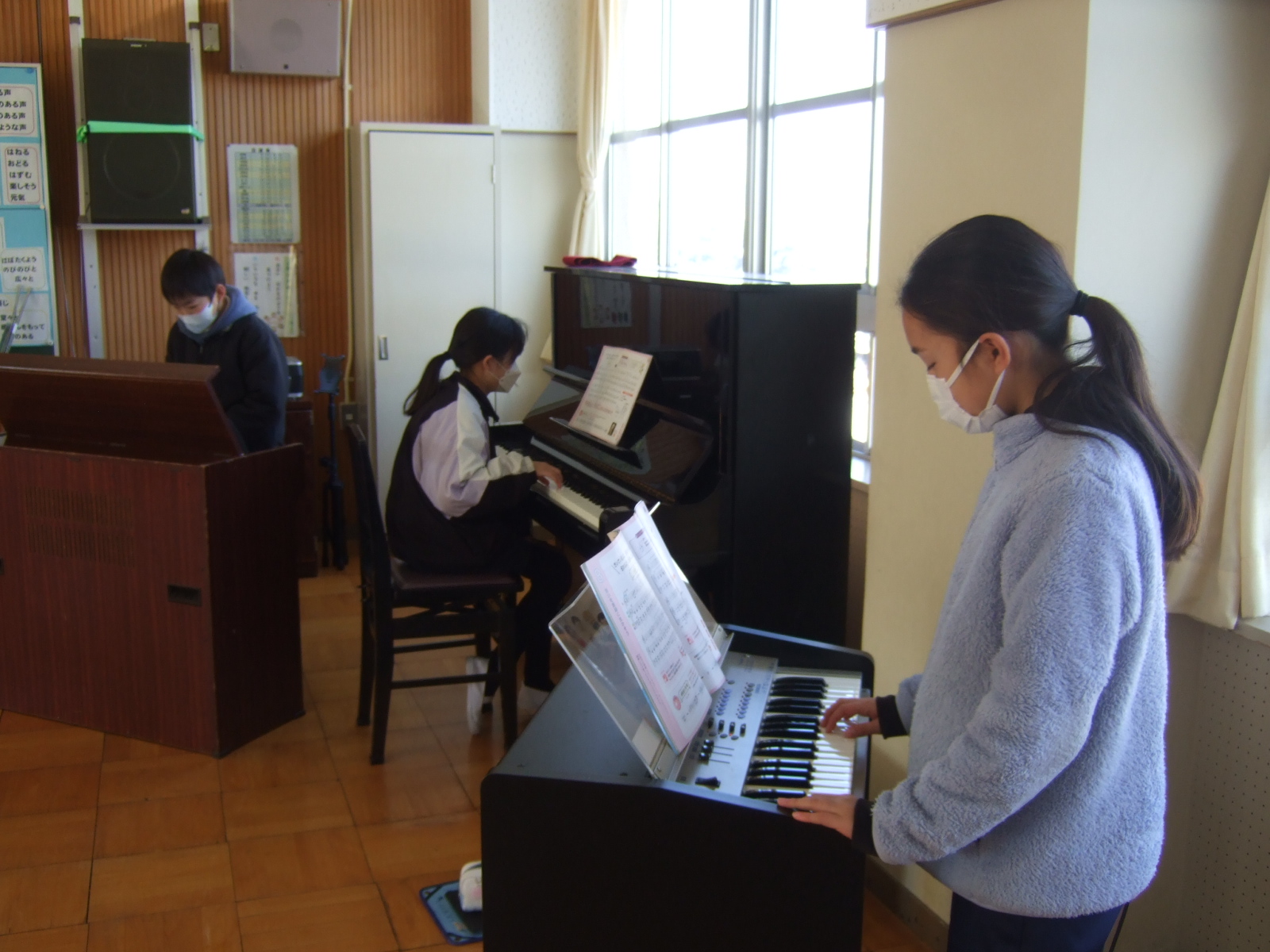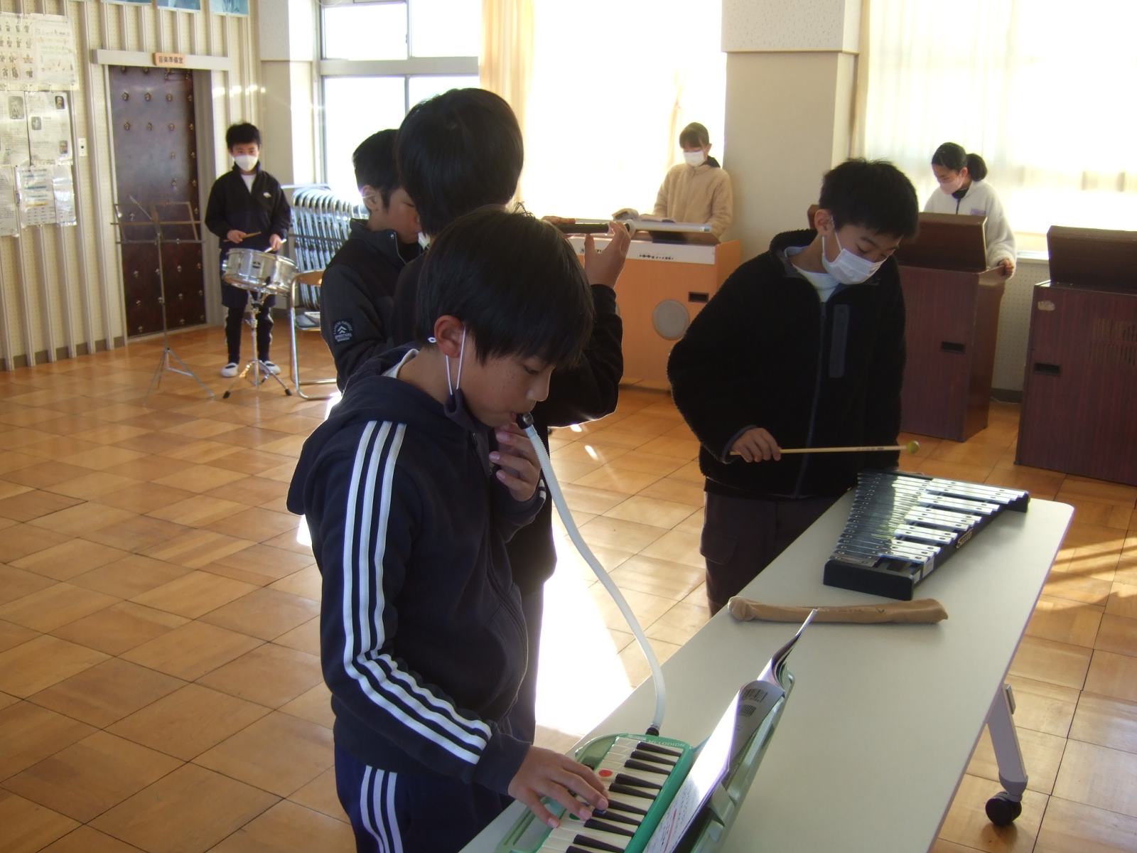 担当は、風邪で欠席者が多くて、確定していないそうですが、みんな、いろんな楽器に挑戦していました。
