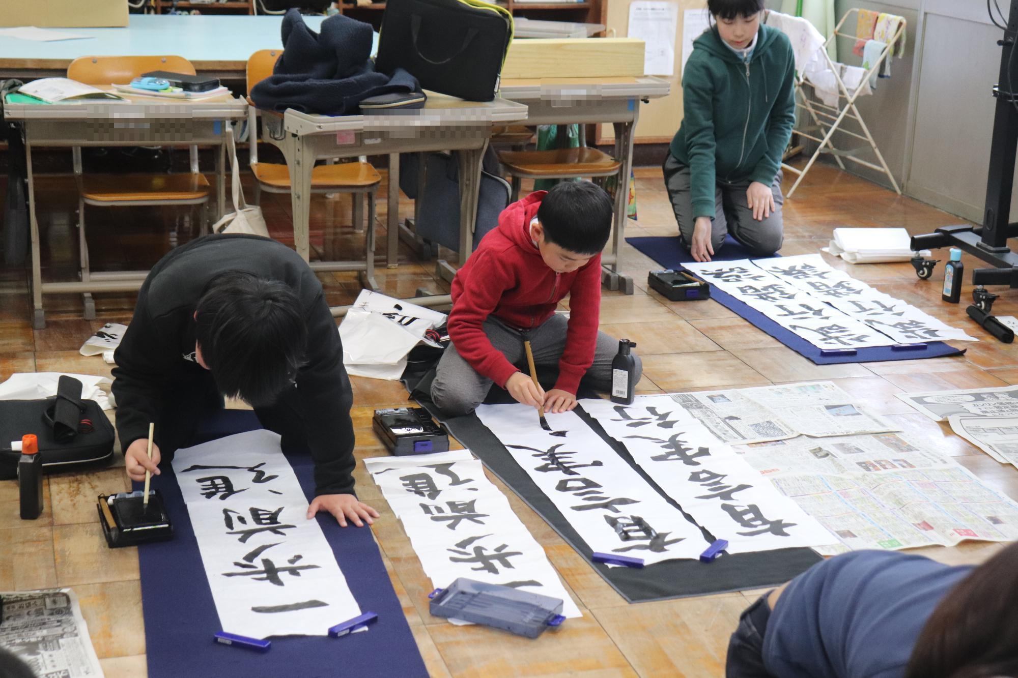 書き初め大会 更新日:2026年01月14日 1・2年生は9日、3・4・5・6年生は13日に書き初め大会がありました。子どもたちは授業や書道教室で学んだことを生かし、今年頑張りたいことを書きました。 1・2年生 3・4年生 5・6年生