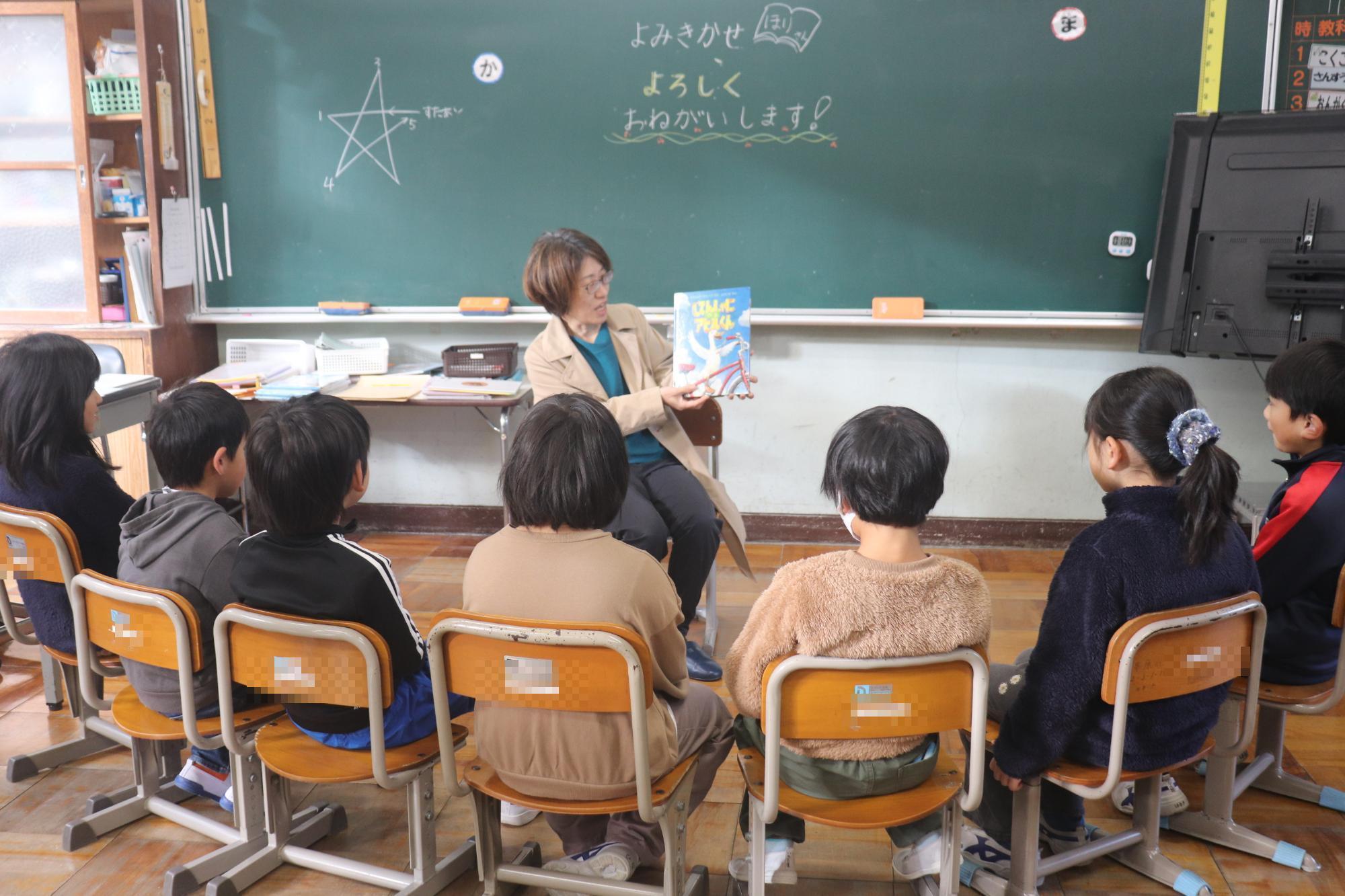 12日にPTA家庭教育委員さんによる読み聞かせがありました。児童は絵本に出てくる登場人物やお話の内容に耳を傾け、楽しい読み聞かせの時間を過ごしました。