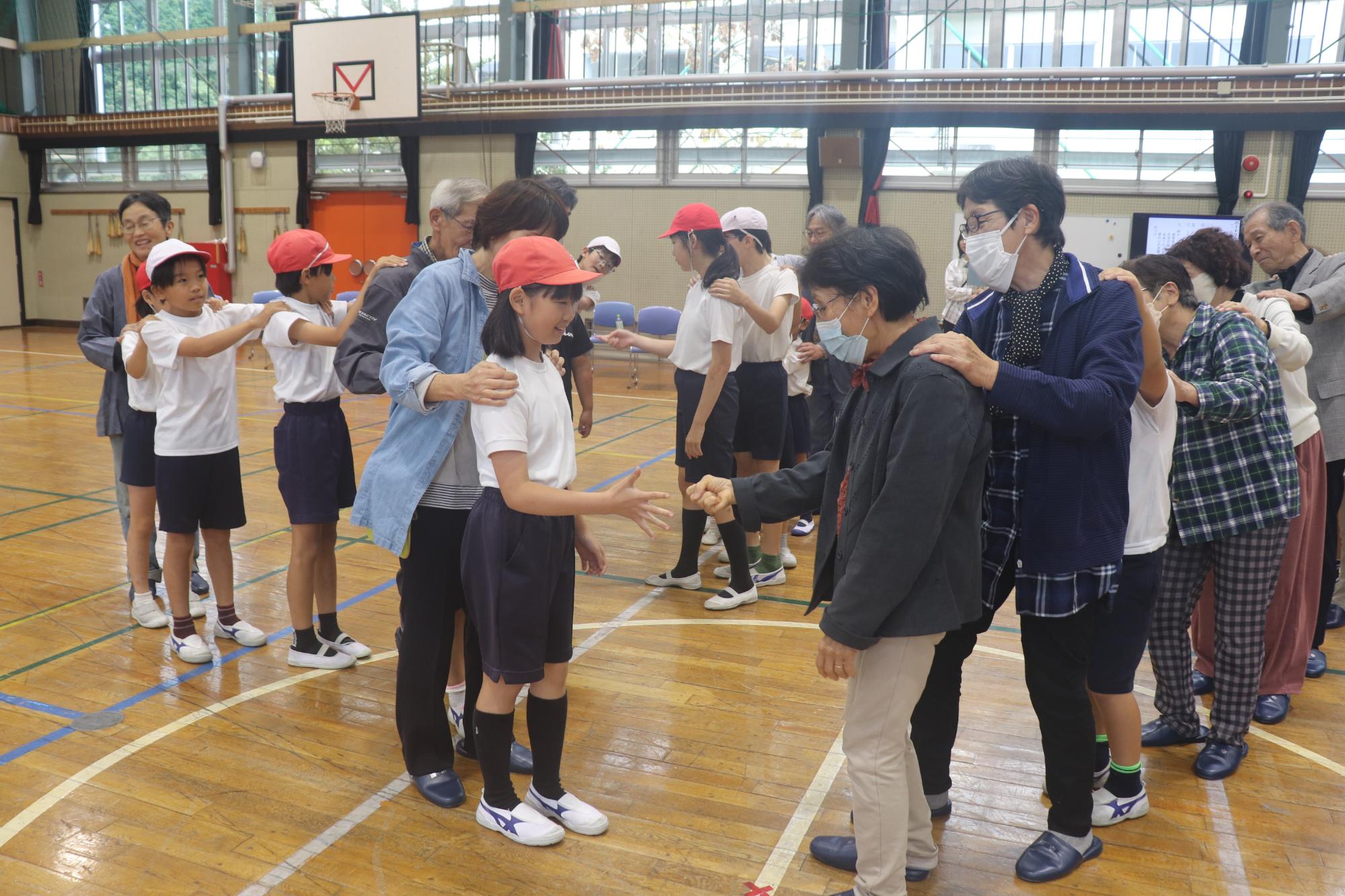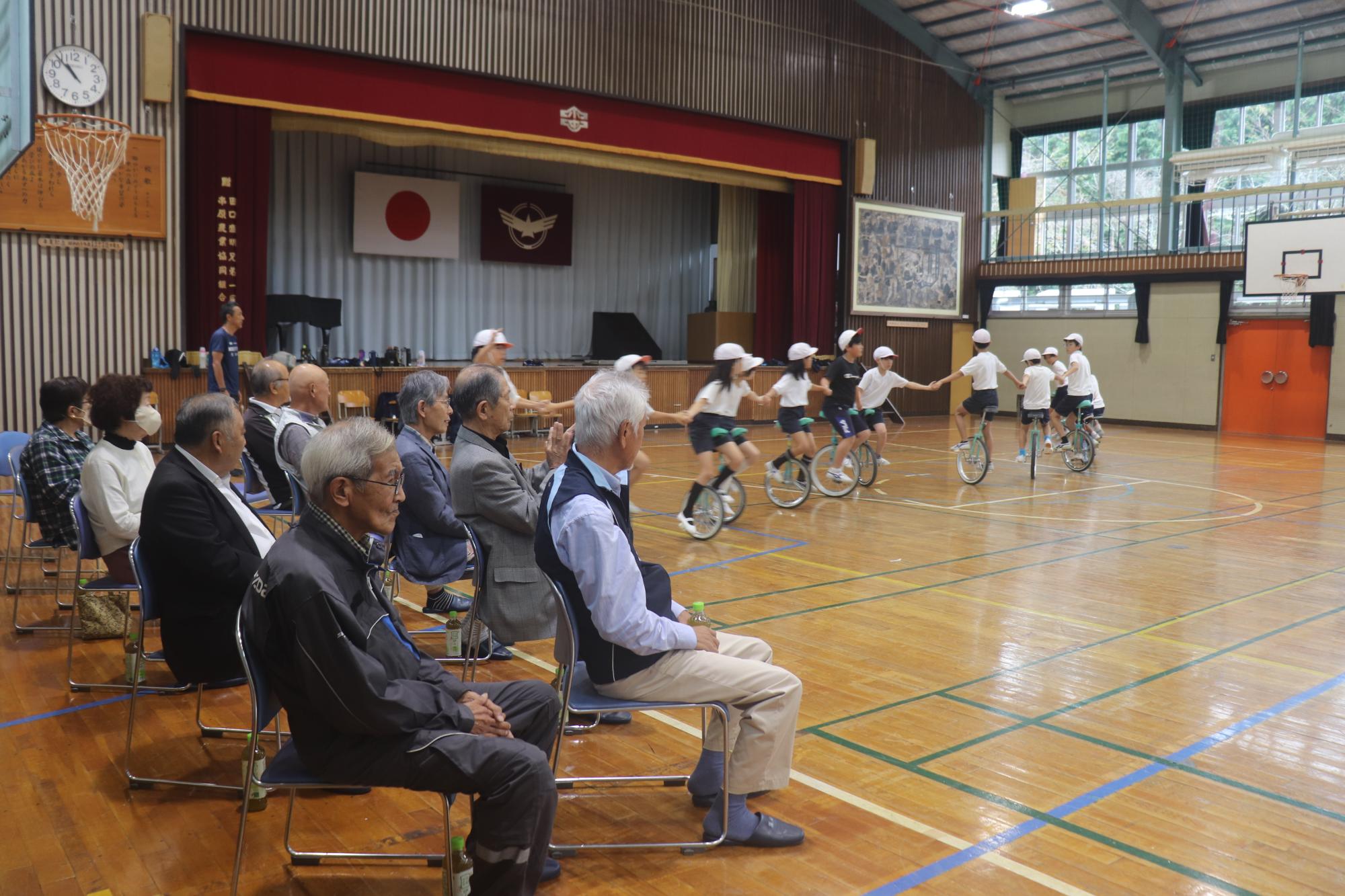 16日にハートフル交流会を実施しました。地域の方々に一輪車の演技を披露し、一緒に絵しりとりやじゃんけん列車をして、楽しく交流しました。