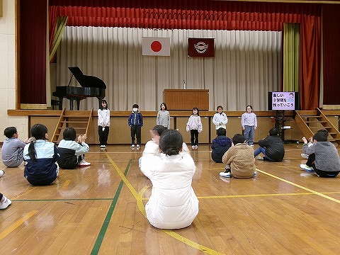 3学期が始まりました。始業式では、各学級の代表の子が今までの生活を振り返りながら、3学期に頑張りたいことを堂々と発表することができました。