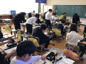 地域の方に「算数ボランティア」として、1年生の算数の学習を支援していただきました。計算カードに取り組み、決められた時間内にカードが終わるとシールがもらえます。子供達に計算の力が付くように、ボランティアの方々が一生懸命教えてくださったおかけで、子供達も意欲的に取り組み、シールをたくさんゲットしている子も何人もいました。笑顔もたくさん見られました。算数ボランティアの皆様、ありがとうございました。