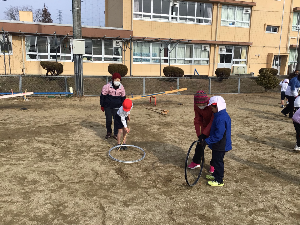 1年生が、地域の方々に昔あそびを教えていただきました。竹で作られた竹馬や竹とんぼなどのやり方を教えていただきながら2時間たっぷり遊びました。竹馬は難しくなかなかうまくできませんでしたがあきらめずに何度も挑戦するなど、夢中になって遊びつくしました。地域の方がありがとうございました。