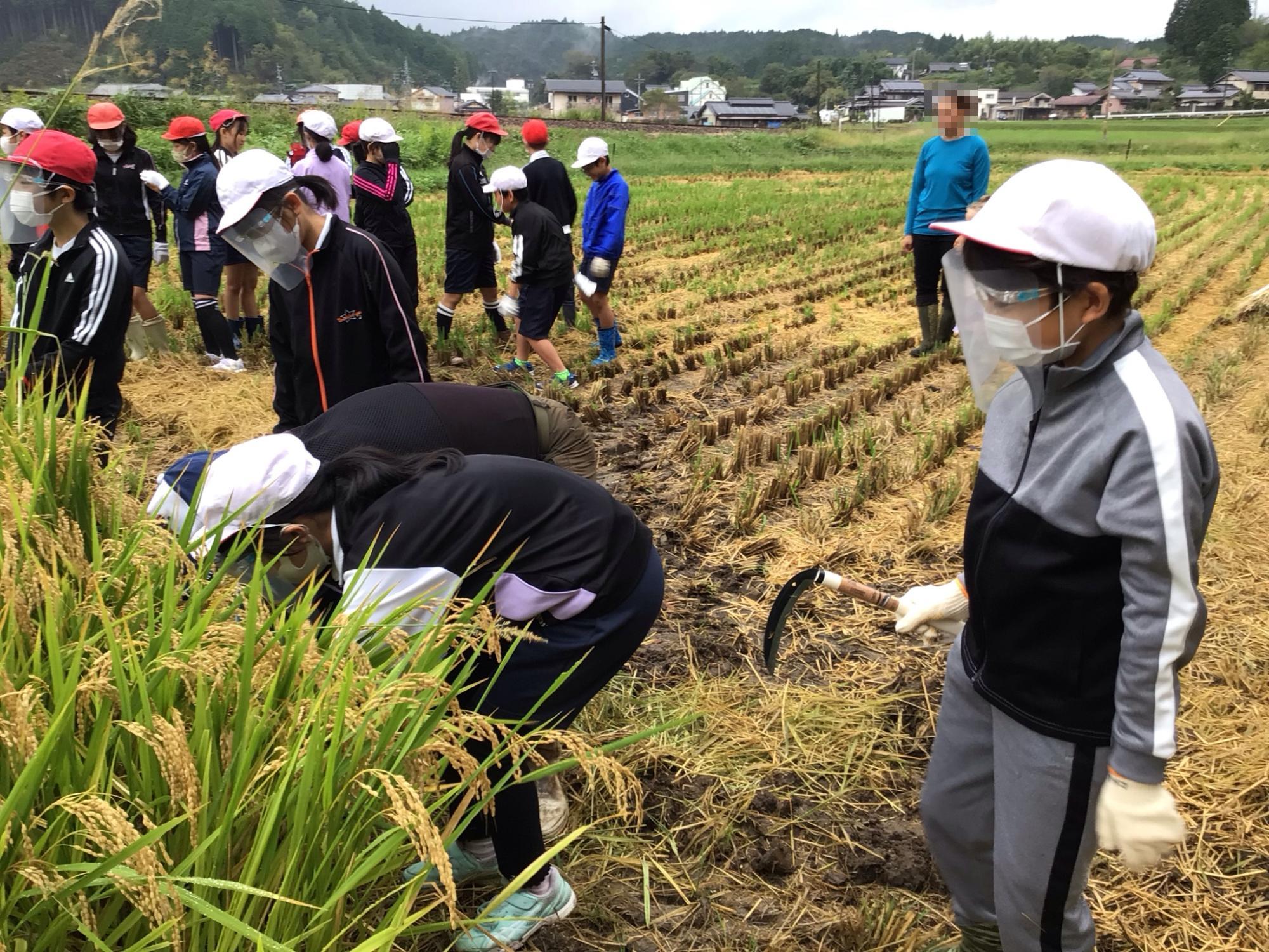 地域の方に教えていただきながら、9月に稲刈り体験、10月22日に脱穀、もみすり、精米体験をしました。児童は、「楽しかった」「大変さが分かった」「食べ物を大切にして残さず食べたい」と話していました。収穫したお米は今年度中に調理実習を行い、感謝していただきます。