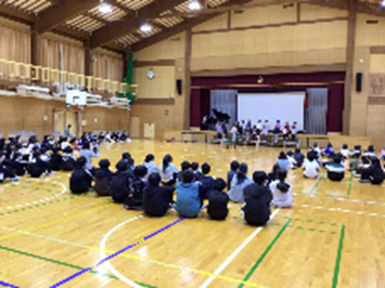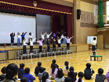 各クラス1曲ずつ、練習をしてきた歌を披露しました。最後に「手をつなごう」という曲を全校合唱しました。協力して合唱の練習をする良さに気付いたり、他のクラスの合唱を初めて聴いて、「元気さ」や「声のきれいさ」など良い姿を見つけたりすることができました。