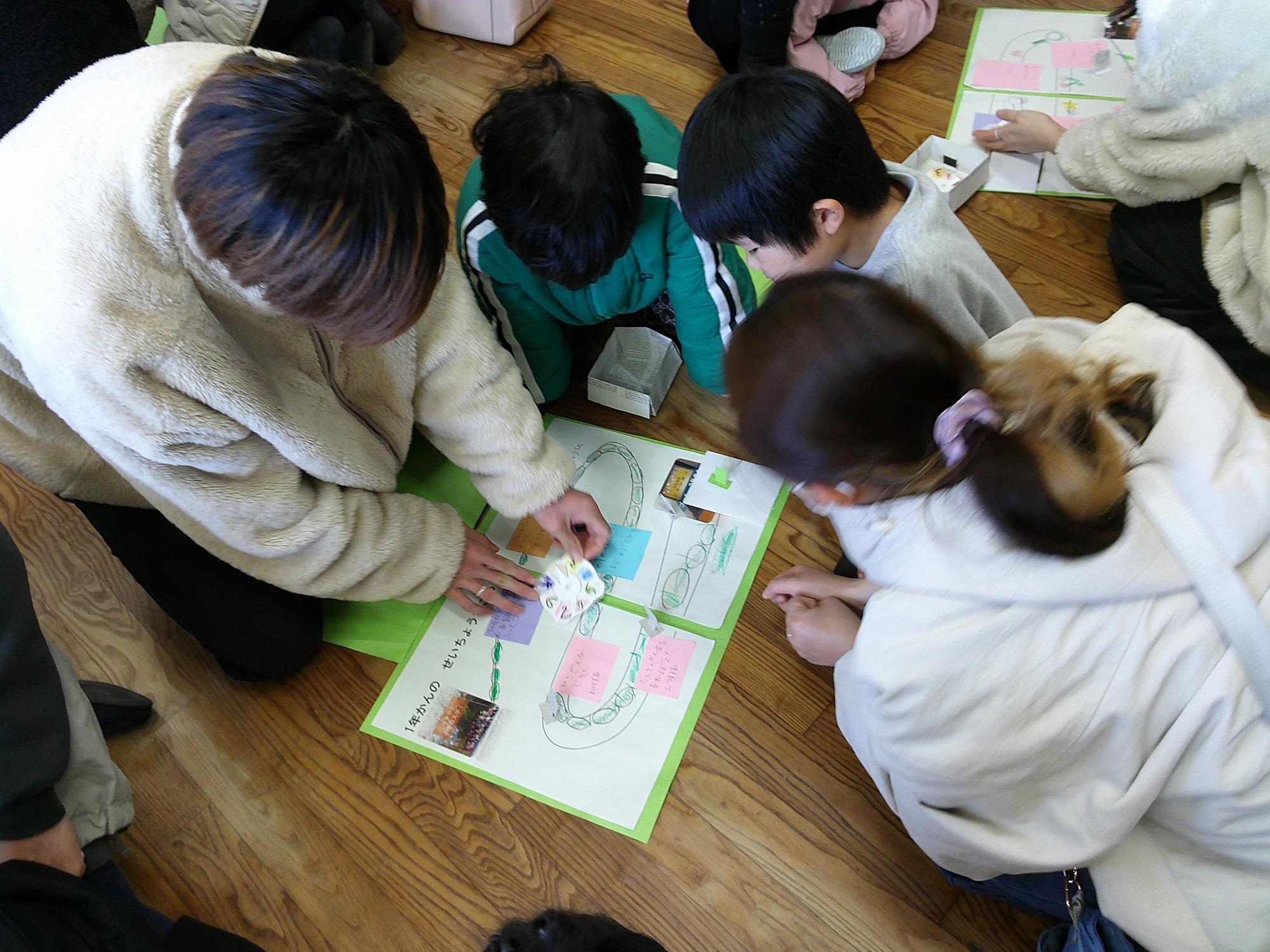 児童がつくった「1年間の成長すごろく」を親子で楽しむ場面