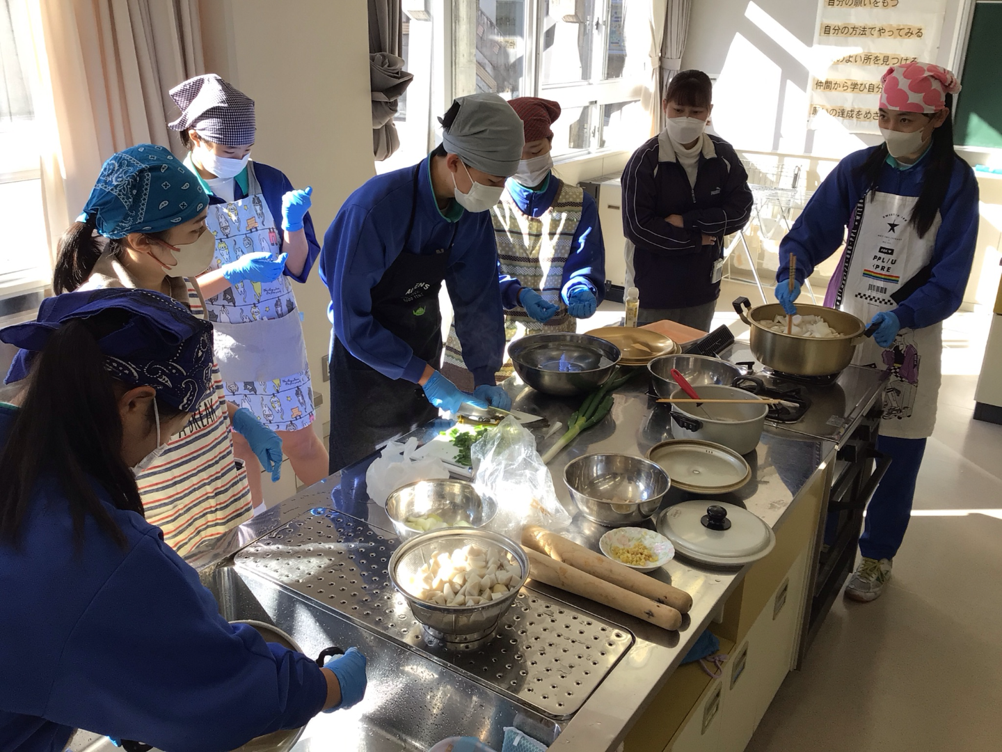 郷土料理を学ぶ 更新日:2025年12月16日 3年生が郷土料理を学びました。飯地町特産品販売部会のみなさんを講師にお迎えし、具だくさん豚汁といもがねかいもちを作りました。大変おいしく作ることができました。ふるさとの味、いつか思い出す時が・・・。