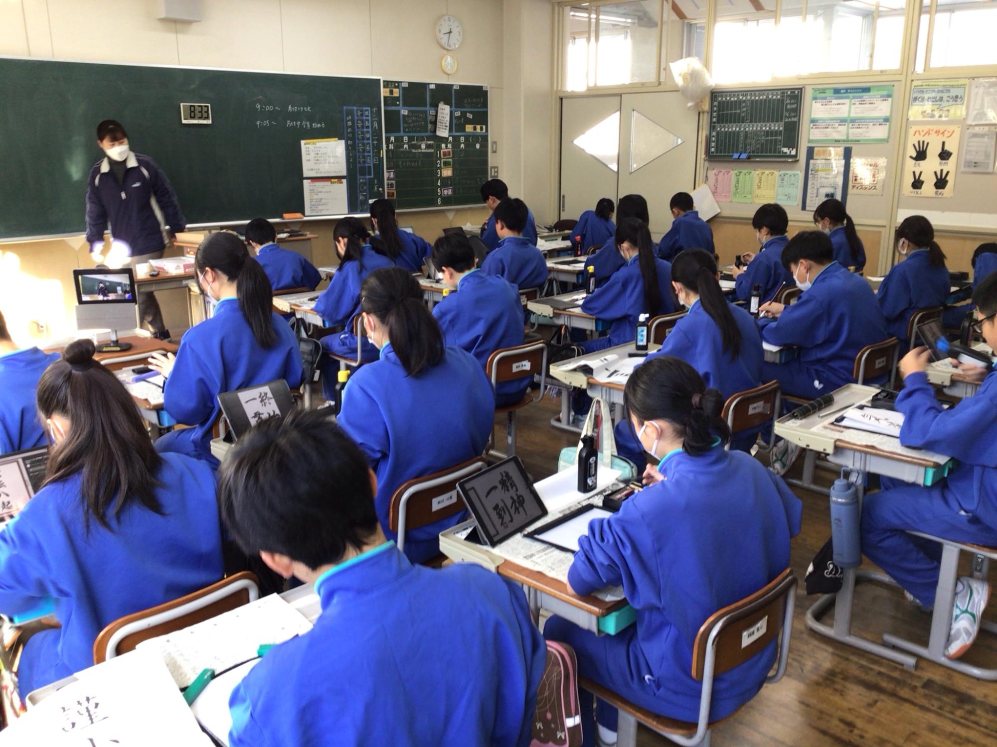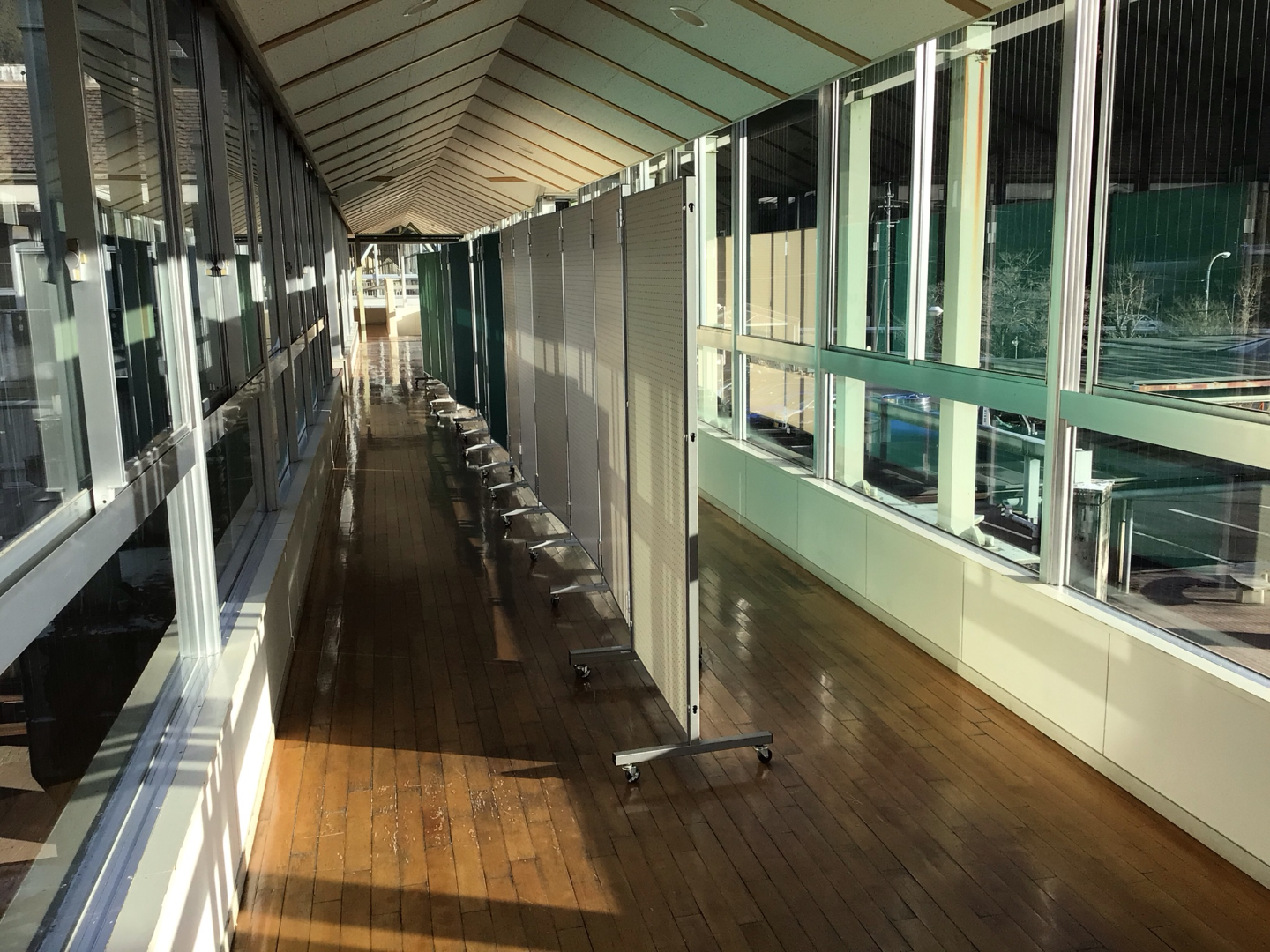 空中廊下に、全校生徒の決意の言葉が並びます。