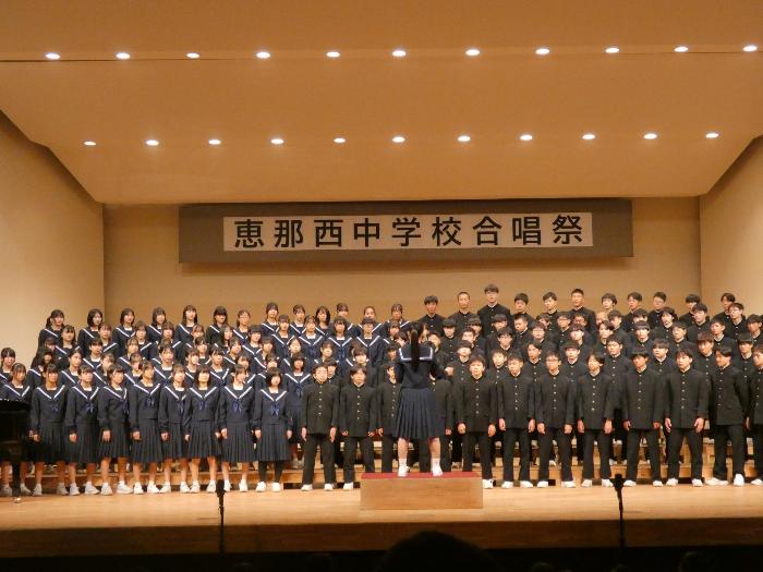 各学級や学年で一生懸命に練習してきた合唱を恵那文化センターで交流しました。