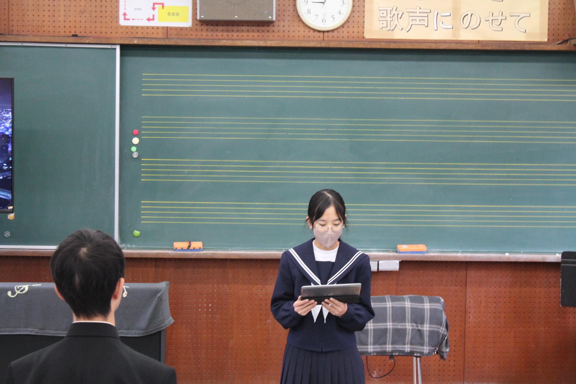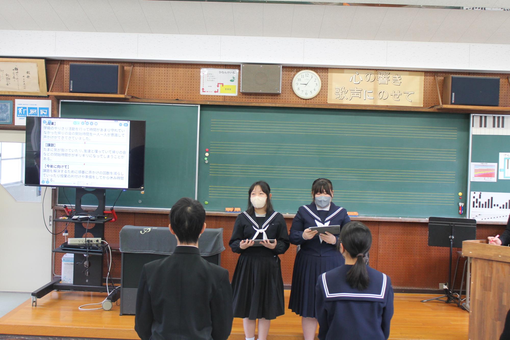 26日に2学期の終業式を行いました。その後の集会では、各学年代表生徒が、2学期の成果と課題を語りました。