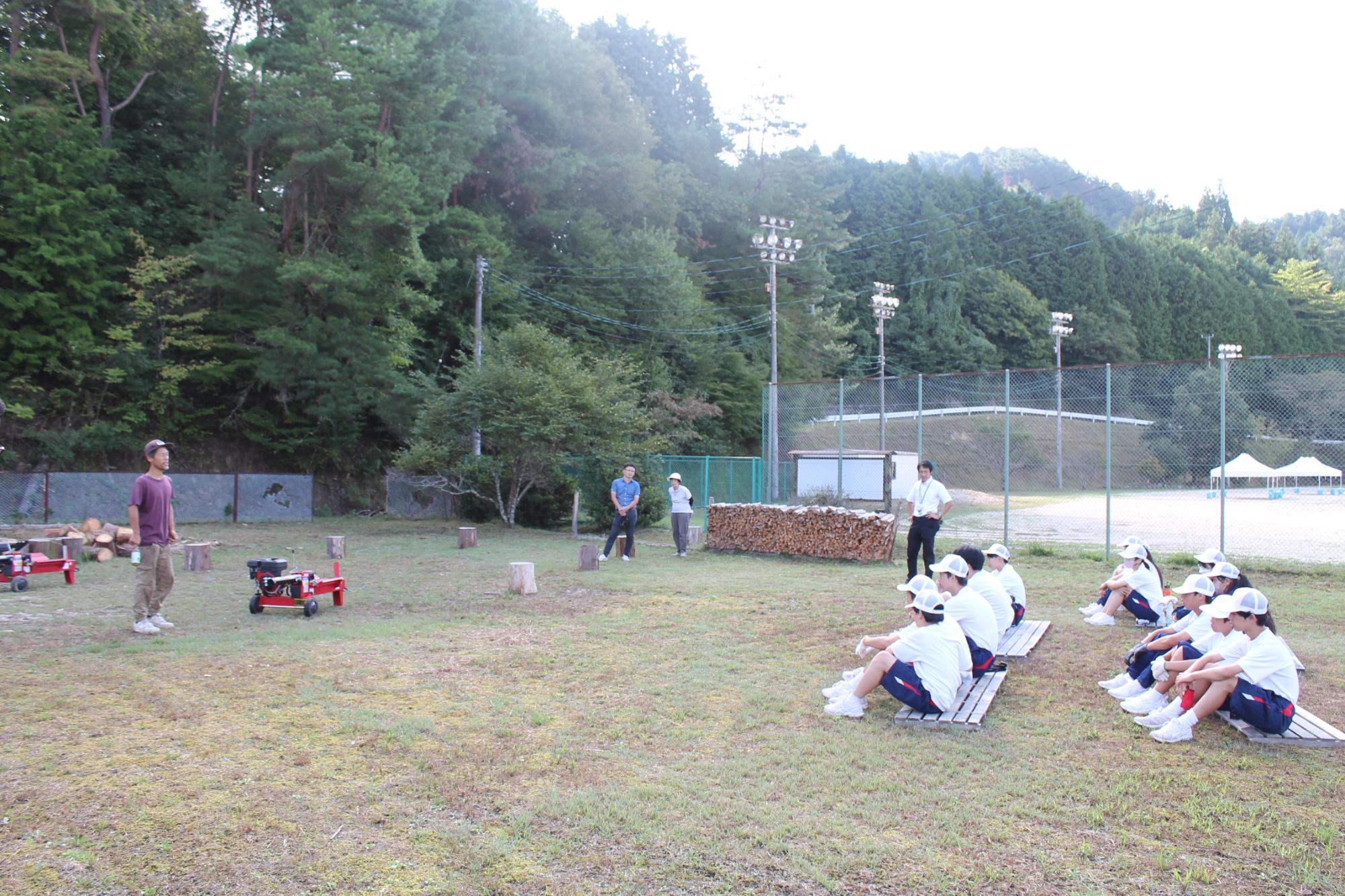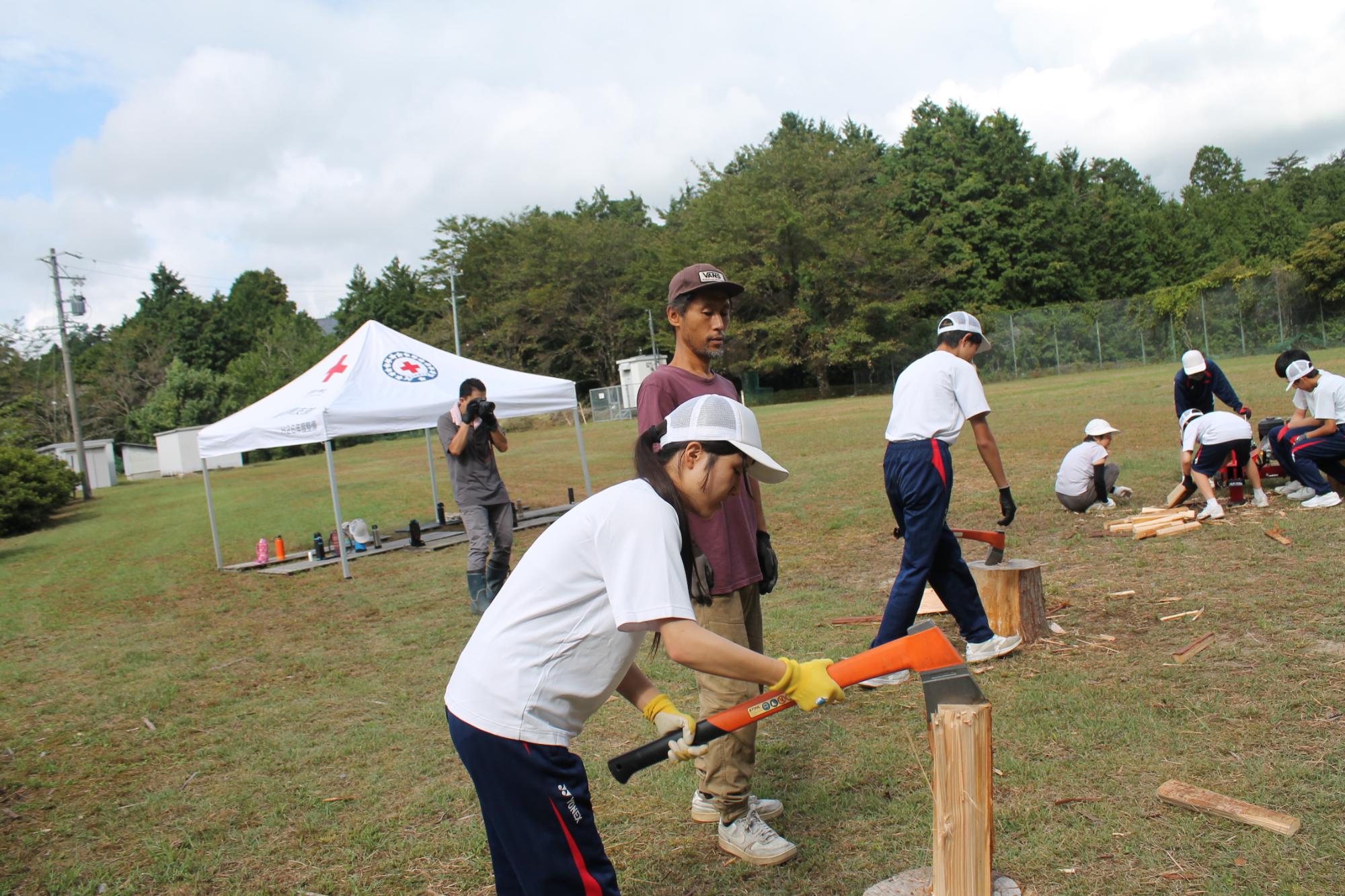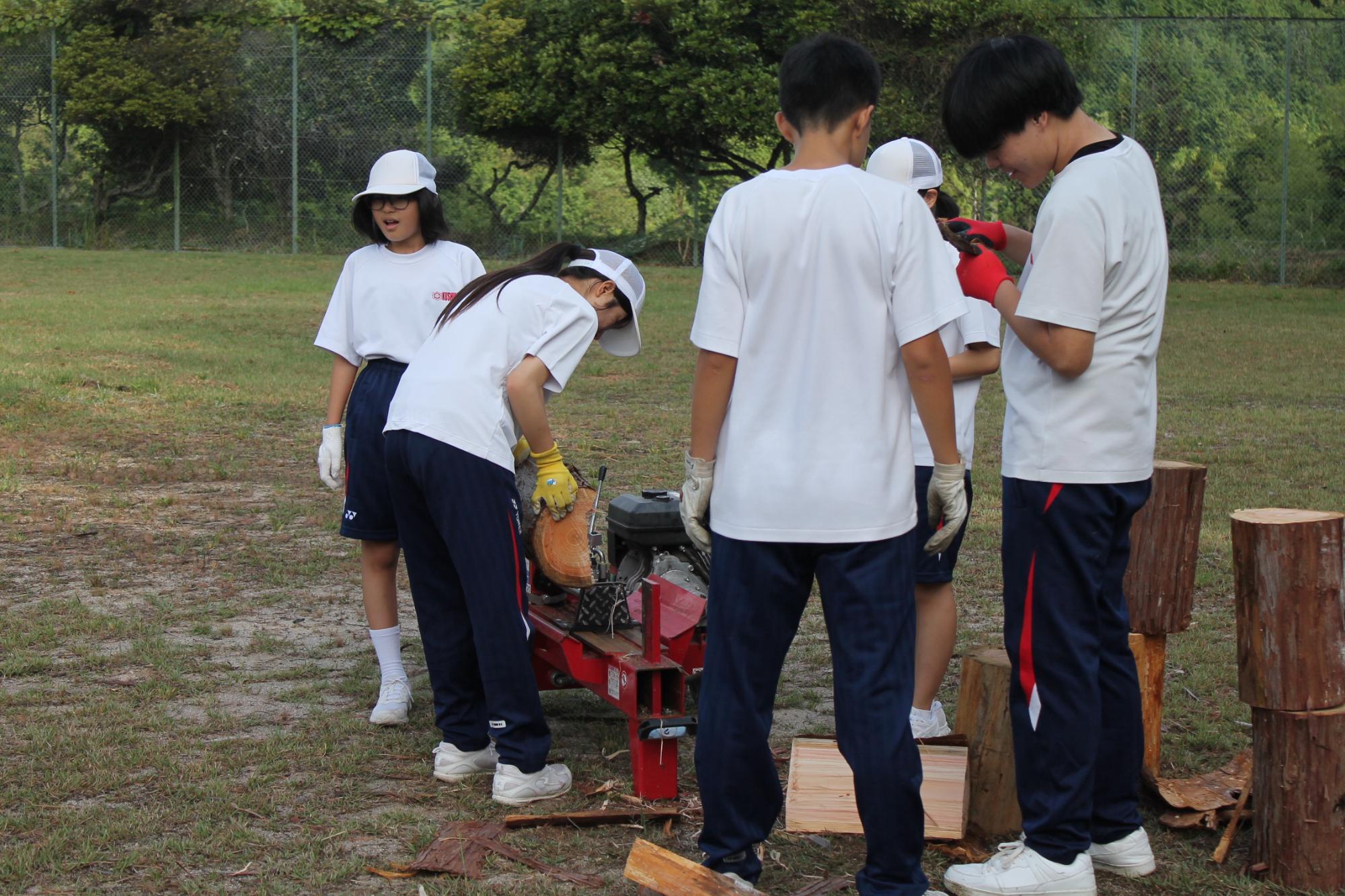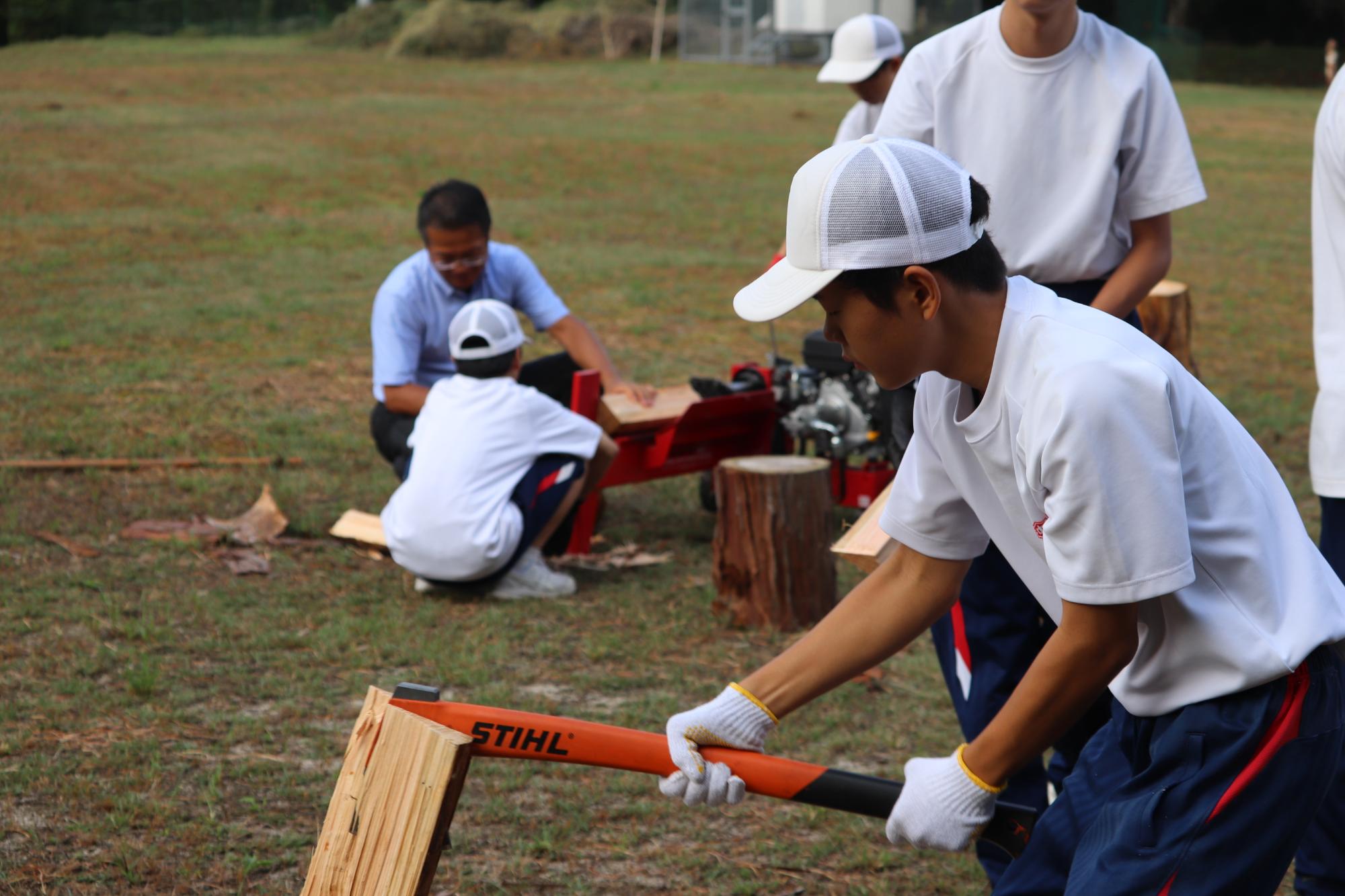 19日に生徒会活動で薪割りを行いました。地域の方にご指導をいただき、本年では二回目の薪割りとなります。