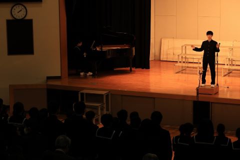 開会式では、合唱委員長の熱い語りと全校で校歌を歌いました。