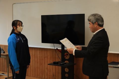 人権作文、ボランティア、バレーボール部の表彰でした。
