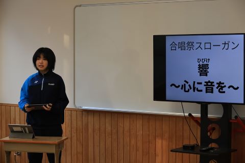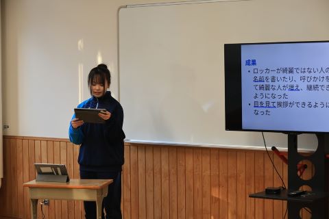 生徒会執行部や各委員会の委員長が、後期の活動の振り返りと3学期に向けての課題について発表をしました。