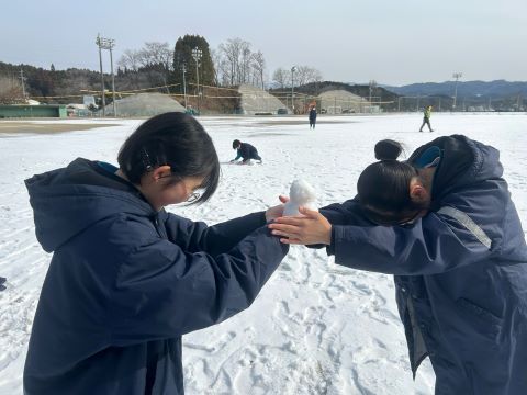 「雪玉欲しい人~!」と、雪玉を投げるだけではなく、雪玉を提供する生徒もいました。それぞれの楽しみ方で雪遊びができて、良い時間になりましたね!
