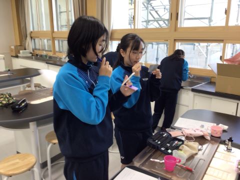 また、今回の歯科指導では「フッ素の大切さ」について実験をしながら学びました。