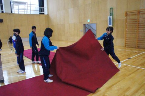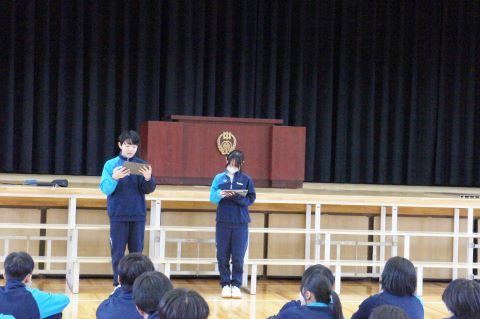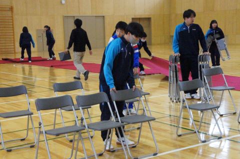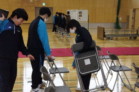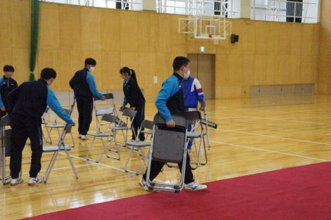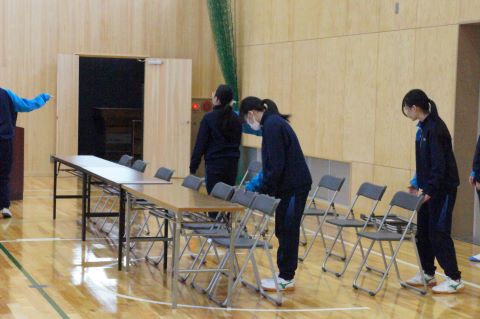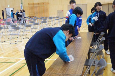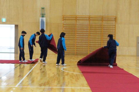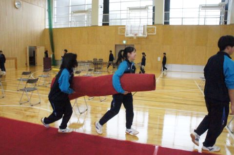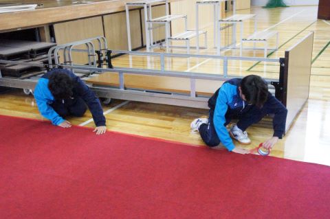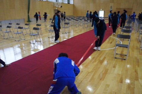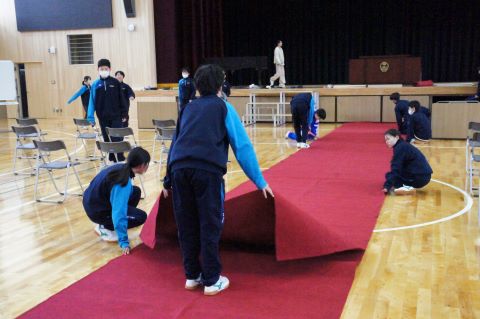 卒業式まであと1週間になろうとしている今日、1・2年生で卒業式の準備を行いました。