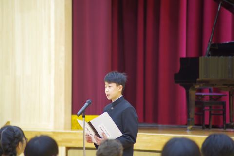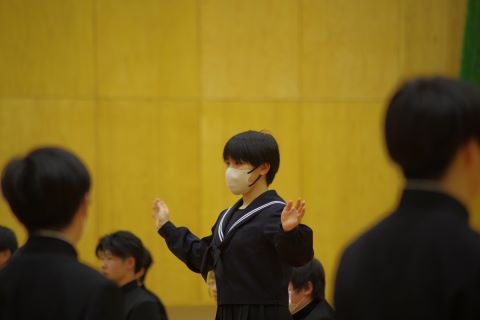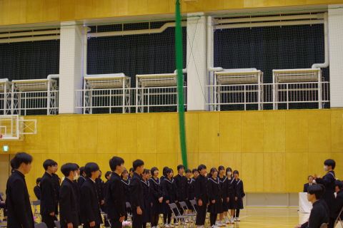 3年生への感謝と憧れの気持ちがこもった話と「サザンカ」の合唱。