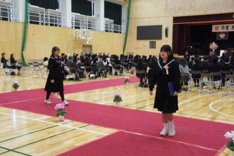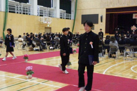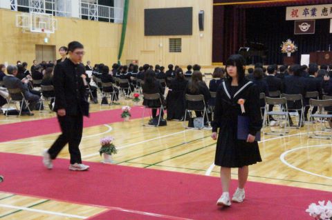 卒業証書授与式、第2弾は在校生の送辞、卒業生の答辞、そして退場の様子です。