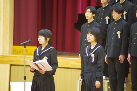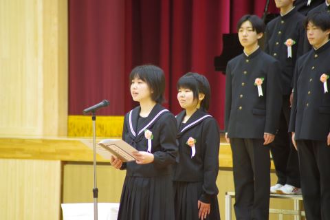 続いては3年生の答辞。2名の生徒がこれまでの思い出や仲間、家族、先生への感謝の気持ちを話してくれました。