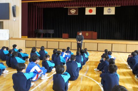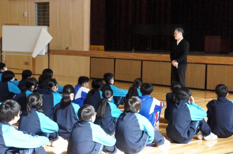 また、恵那南中の校歌も聴きました。どの生徒も歌詞に注目しながら真剣に聞いていました。
