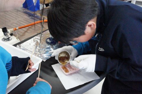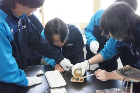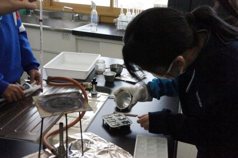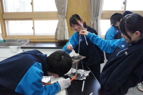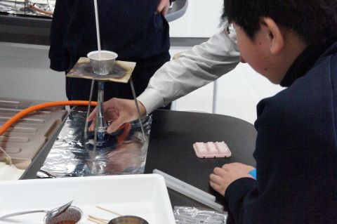 理科の授業では、状態変化を利用して、飴づくりを行っていました!