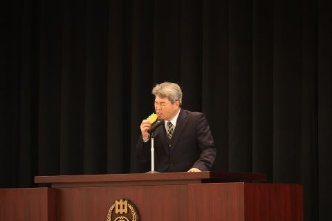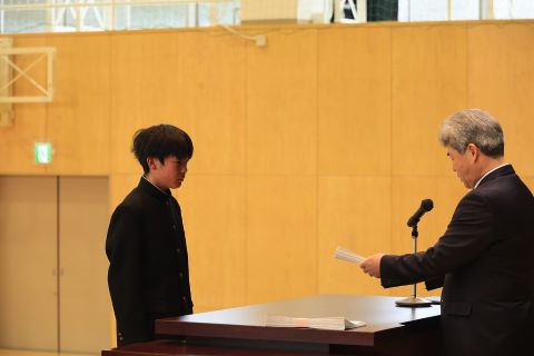 校歌を歌い、各学年の代表が修了証を受け取ります。