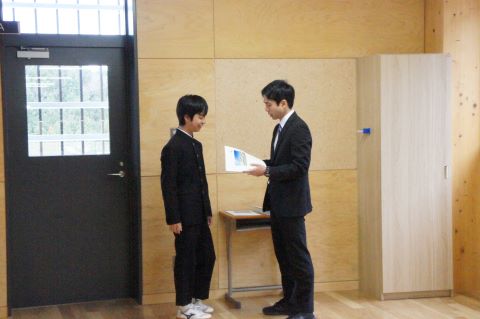 まずは通知表の返却。担任の先生と1対1の最後の時間。