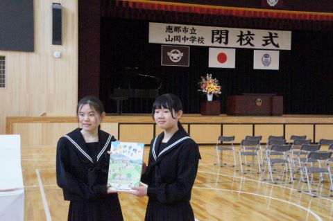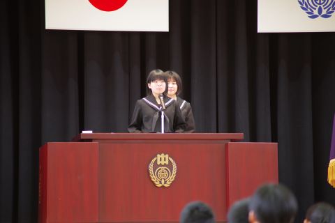 生徒代表の話では、3年生の2人が学校への感謝と、これからを担う後輩たちへの熱いメッセージを残してくれました。