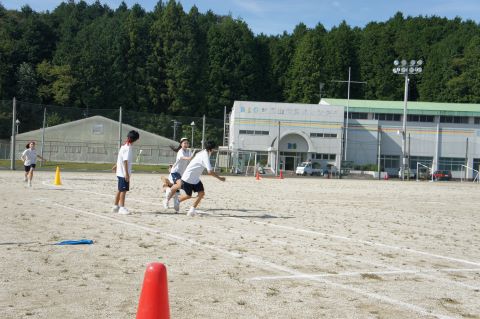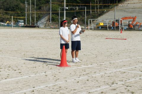 この競技の見どころは、コーンを周る時の内と外の役割、そしていかにはやく棒を飛び越えていけるかです。全員に大切な役割があるということですね!
