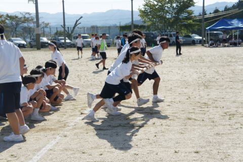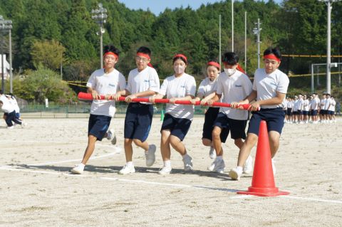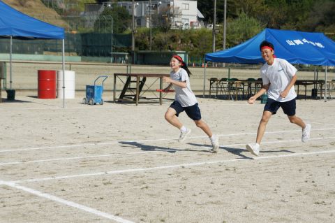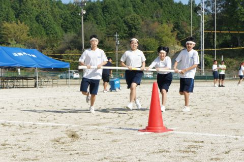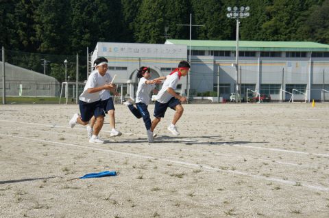 1~3年生が混ざった6人×5のチームです。タテのつながりが見られる種目ですね!