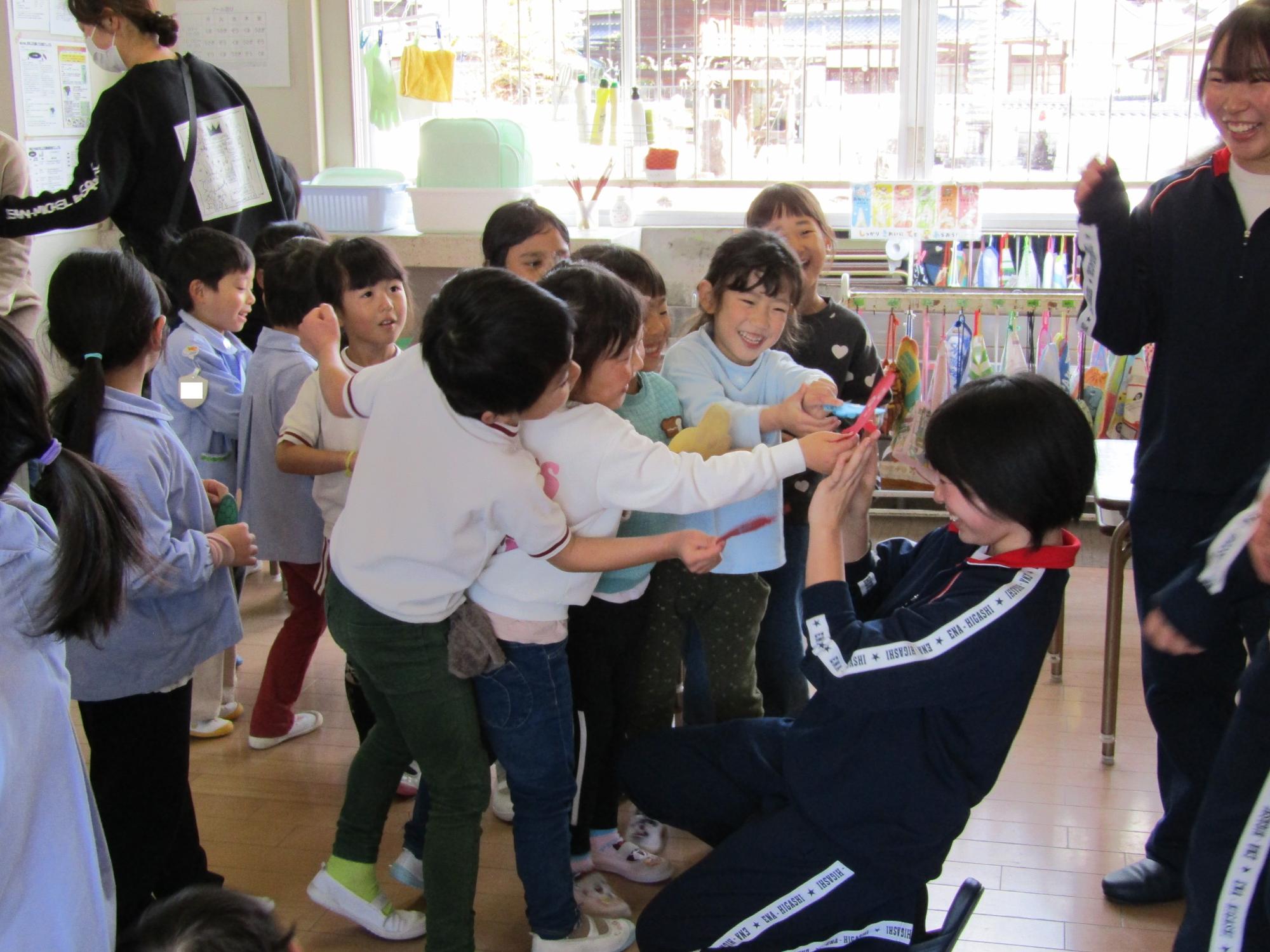 じゃんけん列車です。「勝った!」「イエーイ!」