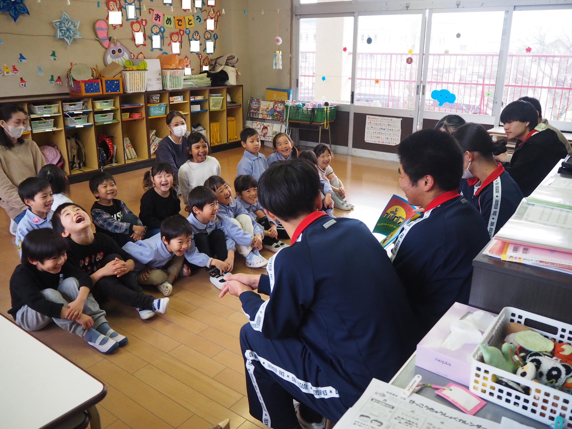 絵本を読んでもらいました。