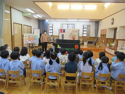 人形劇で、「5つのお約束」を聞き真剣に聞くこども達でした。