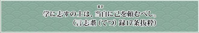 何かを学ぼう、勉強しようと心に決め、自分の人格や品性を高めようとする者は、本当に頼りにするのは他の誰でもなく、自分自身であることを自覚しなくてはなりません。 誰かや、何かがないから学べない、勉強ができないと言い訳するのでなく、強い意志さえあれば、どこからでも誰からでも「学び」は始められるものです。